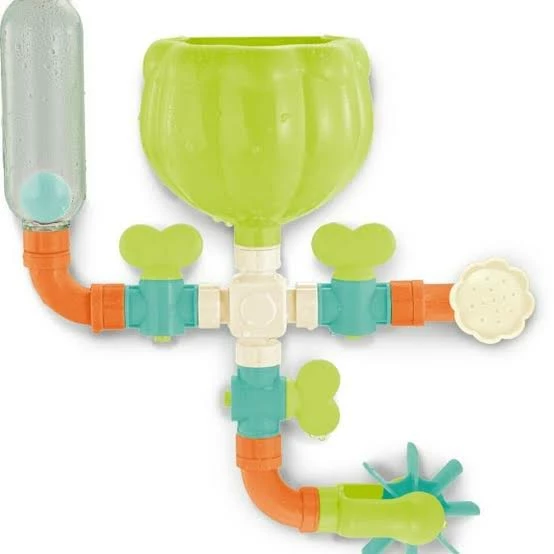 Connect the pipes and just add water, and watch the water flow through the flower fountain, or spin through the wheel.
