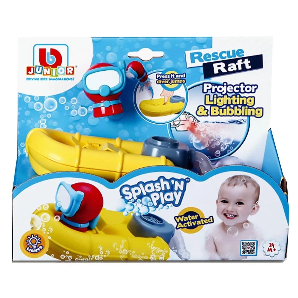 - The BBJ Splash N Play Rescue Raft is a bathtime toy that comes in red, yellow and blue.