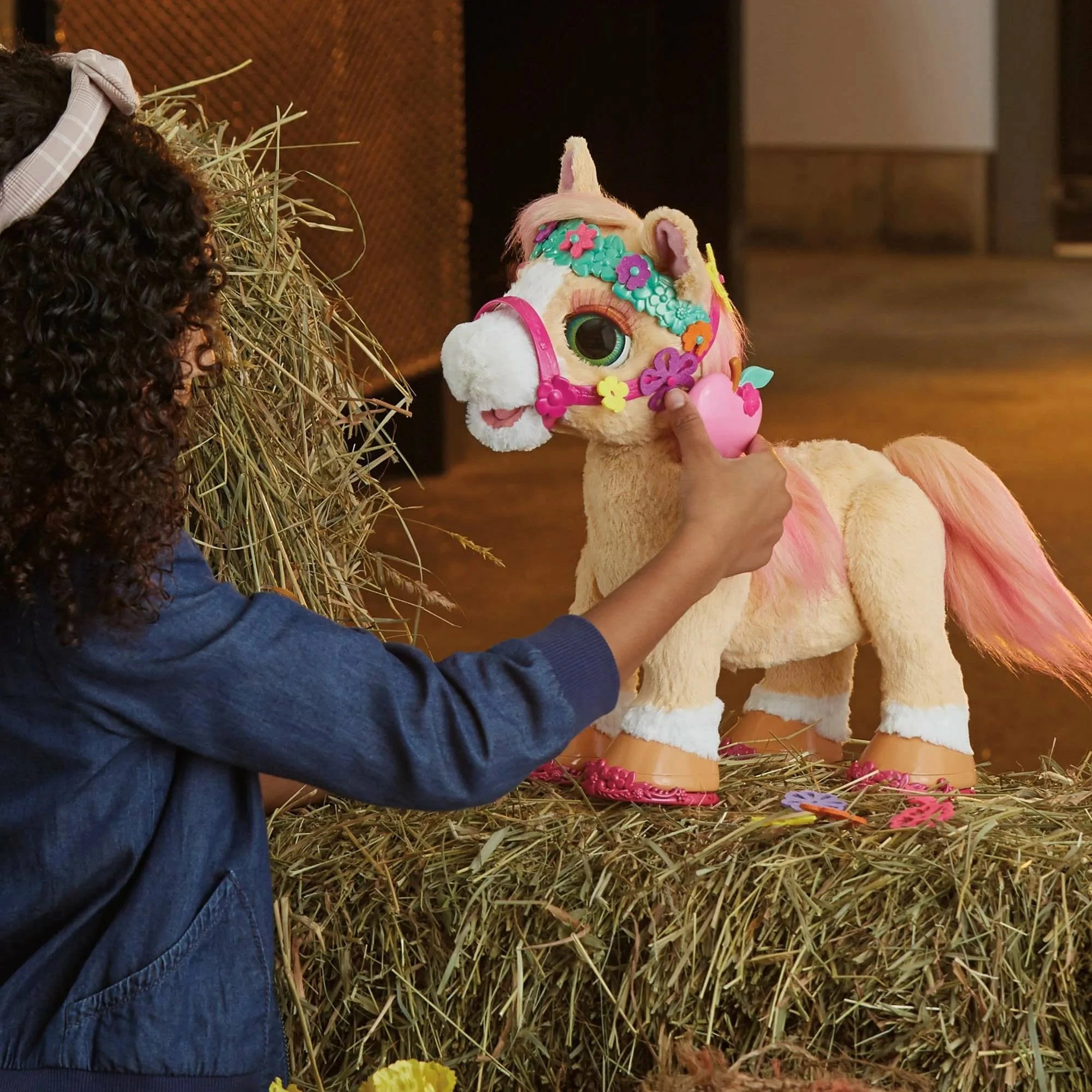 Attention, all pet and pony lovers – say hello to Cinnamon, My Stylin’ Pony pet! With more than 80 sounds and reactions, this 14-inch-tall beauty is so responsive and expressive! She blinks, and moves her ears, head, and neck; she responds when she’s fed; and when petted on her back, cheeks, and nose.
