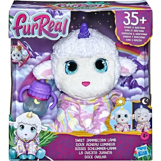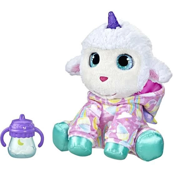 Reach for the furReal Sweet Jammiecorn Lamb light-up toy day and night. She’s soft, snuggly, and kids ages 4 and up can show this plush pet just how much they care. In day mode, feed her with the included bottle, and she’ll make cute eating noises and playful sounds. What makes this interactive toy even more adorable? Kids can cuddle up with her at bedtime, too. When it’s time for lights out, press her horn to close her eyes. The horn will also change color from a happy yellow for day to a soothing blue for night. If kids want to hear lullabies or calming white noise soundscapes, just press the pet’s ear in night mode. This day-to-night friend makes a wonderful gift and a cherished friend.