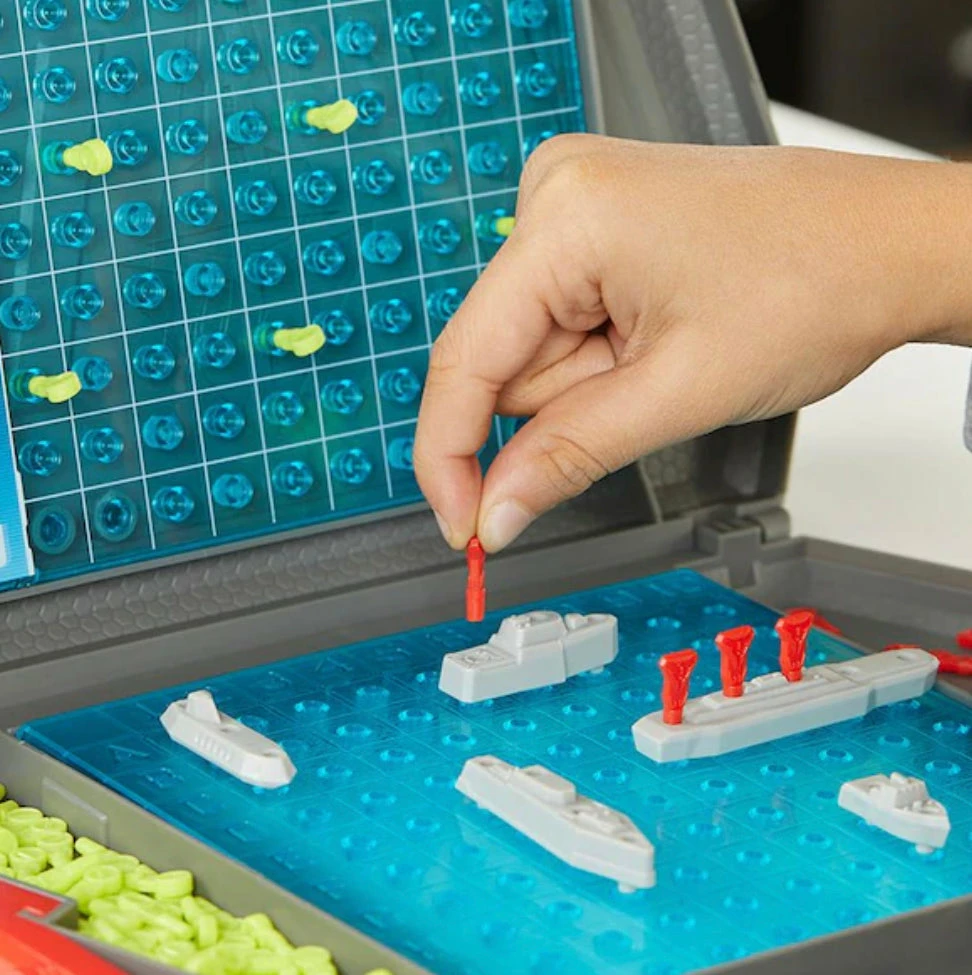 Each player announces the coordinates of each strike and sees if it hits. Position ships strategically to survive an opponent’s relentless strikes, and track hits and misses with red and white pegs on the ocean grid. No ship is safe in this game of stealth and suspense.
