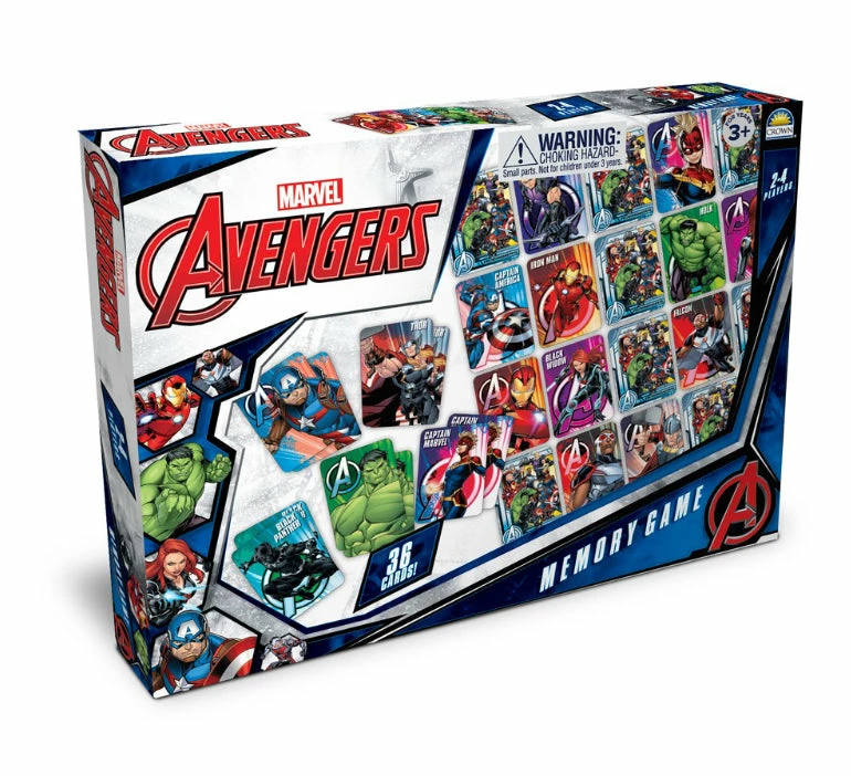 A traditional favourite, with a fun twist, the Marvel Avengers Memory Game features an array of the famous superheroes! Everyone will have fun finding matching character images while testing their memory as they play! Each player turns over a pair of cards remembering where cards are hidden. The winner is the player with the most pairs. With 36 colourful cards suitable for 2-4 players aged 3 and up.