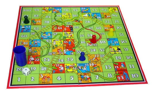 A classic and very simple board game, designed to appeal to young and old. Snakes and Ladders involves players racing to be the first to get to the finish square. Along the way, you may be able to climb up a ladder or slide down a snake.