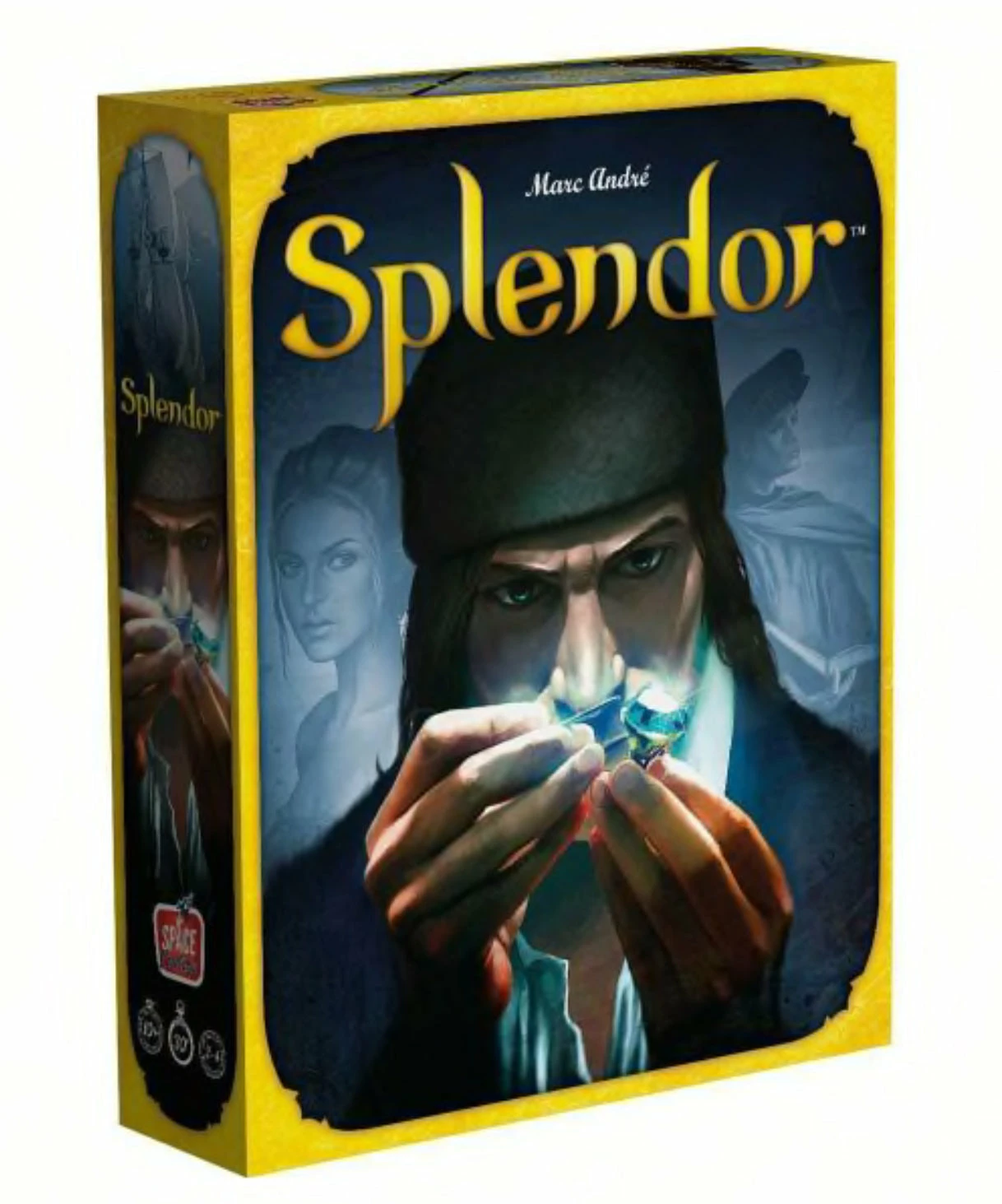 Splendor is a game of chip-collecting and card development. Players are merchants of the Renaissance trying to buy gem mines, means of transportation, shops – all in order to acquire the most prestige points. If you’re wealthy enough, you might even receive a visit from a noble at some point, which of course will further increase your prestige.
