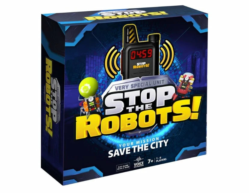 A mad scientist threatens the city with crazy robots in this Tomy Stop the Robots Game. Against this threat of a new kind, only one possible defence: the Very Special Unit! Talk to your partner on the field to identify the robots, solve tricky puzzles and deactivate them. hurry, the clock is ticking! Use Speech Recognition Smart Talkie – to communicate with your partner in the field and Sort your cards to identify the robot!