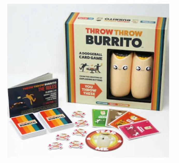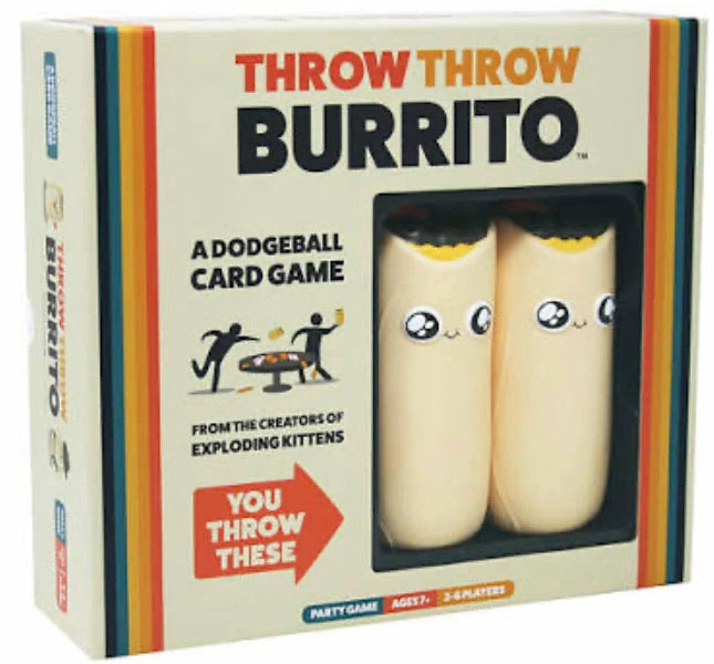 Throw Throw Burrito is what you get when you cross a card game with dodgeball. Collect cards. Play your hand. Throw things at your friends. Try to collect matching sets of cards faster than your opponents while simultaneously ducking, dodging, and throwing squishy airborne burritos.