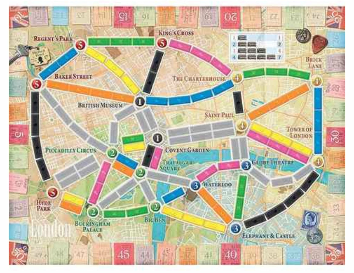 Ticket to Ride: London features the familiar gameplay from the Ticket to Ride game series – collect cards, claim routes, draw tickets – but on a scaled-down map of 1970s London, that allows you to complete a game in no more than 15 minutes.