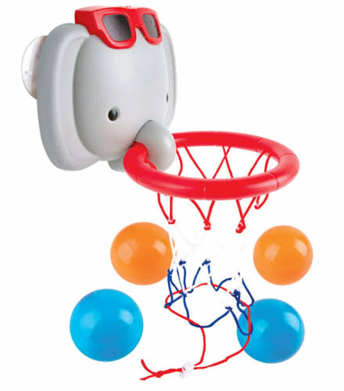 Are you ready for some bath time basketball fun? Simply attach this cute elephant to the bathroom wall using the suction cup on the back of his head then aim and shoot the four balls into the basket!
