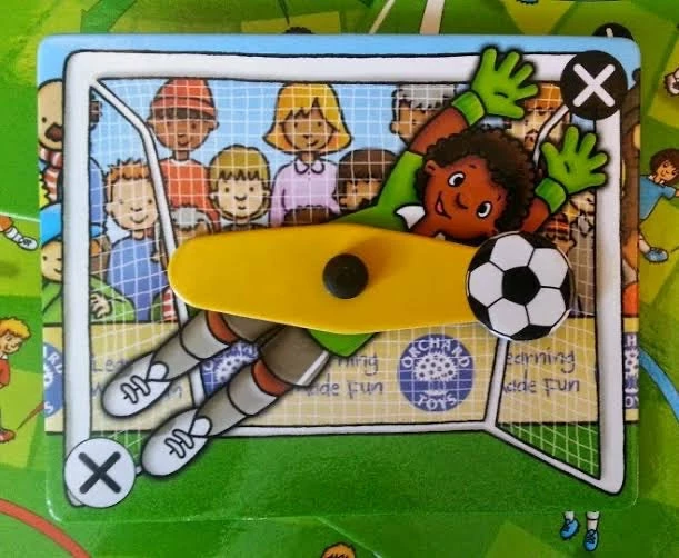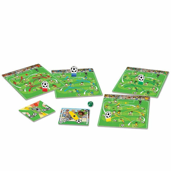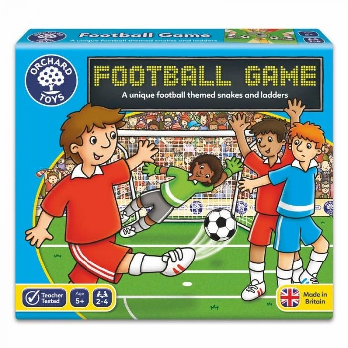 The Orchard Toys Football Game is a game for two to four players based on the classic Snakes and Ladders board game. Players pass the ball backwards and forwards in this fast paced turn taking game. The first player to score a goal wins the game.