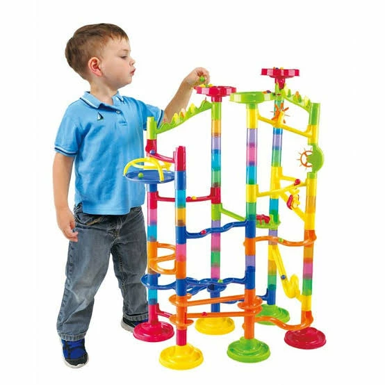 Use your imagination to create your unique track with countless construction possibilities! Get friends and family together to achieve a super fast run! This fun Mega Marble Race by PlayGo encourages hours of creative play, perfect for improving motor skills and problem solving skills.